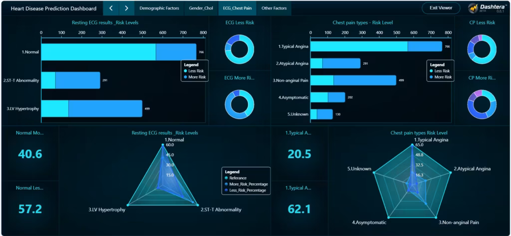 The Heart Disease Prediction Dashboard is a sophisticated interactive tool designed to analyze and visualize the critical factors influencing heart attack risk. Leveraging Dashtera’s powerful no-code platform, this dashboard transforms a comprehensive heart disease dataset into actionable insights through dynamic charts and intuitive exploration.