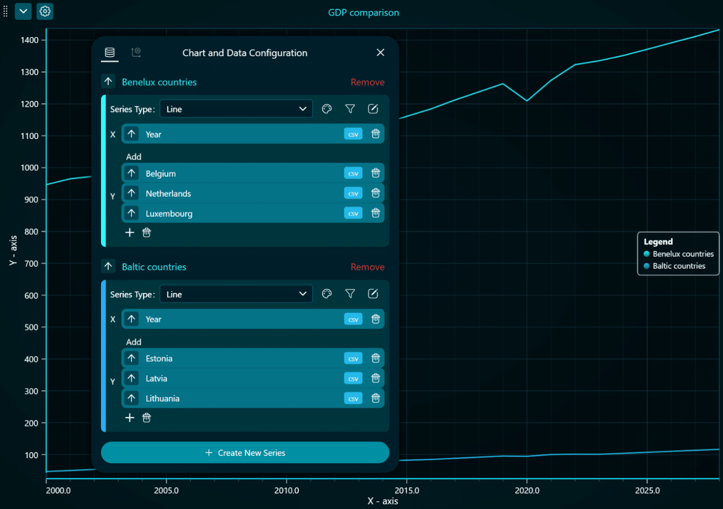 Please note, some chart types have data grouping and aggregation features. In them, some preprocessing functions (functions) are built in.
